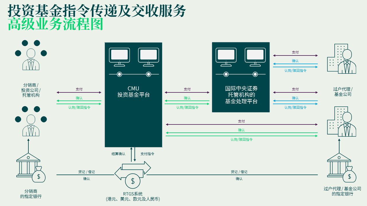 自2009年8月推出以来,CMU投资基金指令传递及交收服务为会员提供一个标准化平台,以处理本地及海外基金公司、分销商、托管行及过户代理之间的投资基金交易,同时通过香港的RTGS系统进行投资基金股份资金结算。