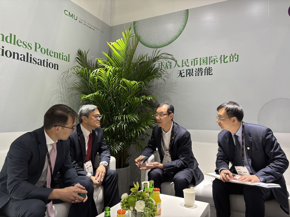 在2024年10月21日至24日,債務工具中央結算系統(CMU)參加了在北京舉行的Sibos 2024年會。在活動期間,CMU與中國外匯交易中心(CFETS)和跨境銀行間支付系統(CIPS)等内地主要金融市場基建設施機構會面,探討進一步加強合作的機會。